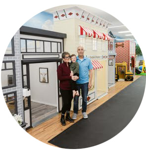 Kids can explore our mini city–complete with a fire station, grocery store, garage, vet clinic, construction zone, and more! They can even drive the town road, ride the bus, or play in the city park.